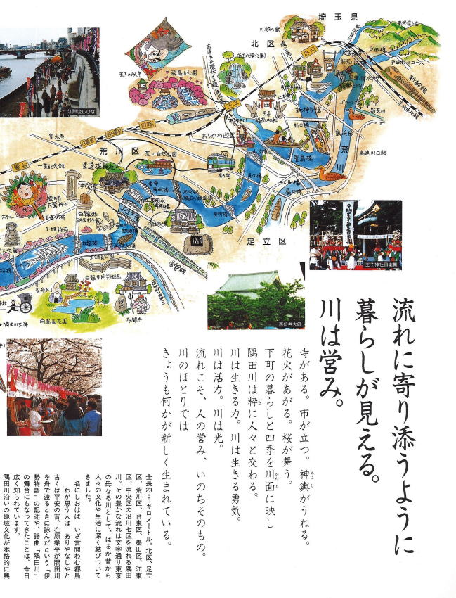 隅田川のイラストマップです。散策にご活用ください。