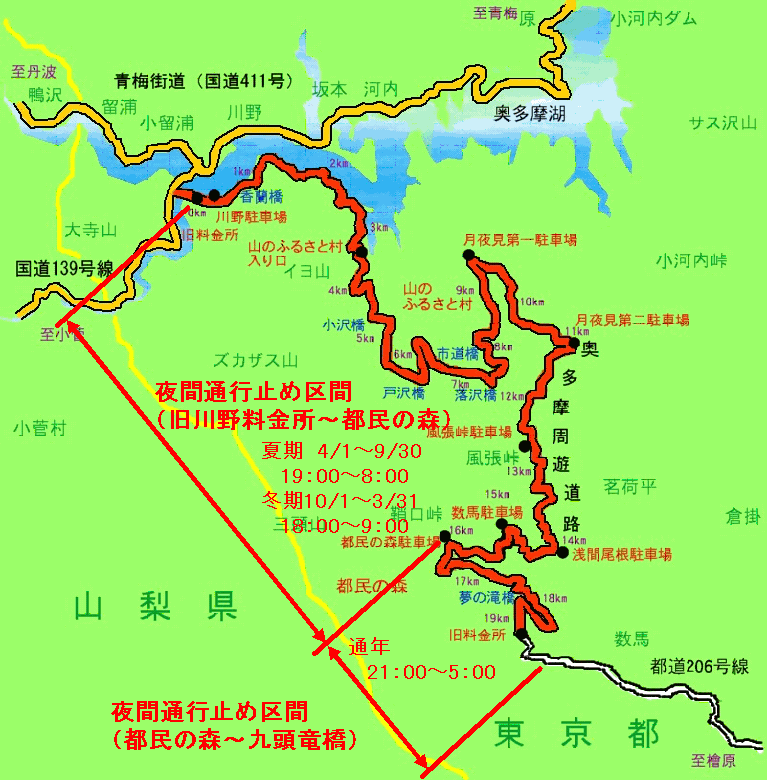 奥多摩周遊道路の夜間利用について