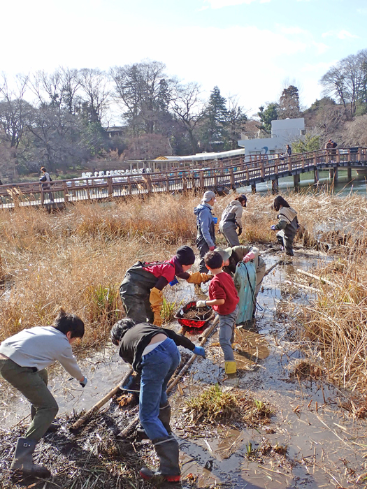 この湿地再生の取組を「チョコッとかいぼり隊〜湿地再生編〜」という市民参加イベントとして、1月に今年度1回目を実施しました。