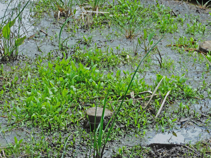 地盤に池底の土を充填したところ、カンエンガヤツリやジョウロウスゲなど様々な湿生植物が芽生え、今ではヤブだったことは思い出せないほどのステキな湿地になっています。