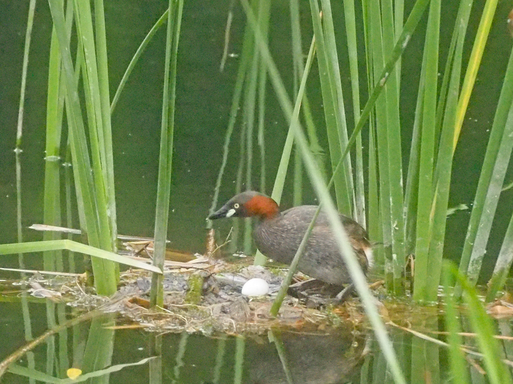これから池の各所でカイツブリたちの求愛や営巣が見られることでしょう。3月上旬には、七井橋近くのヒメガマの中でカイツブリが抱卵を始めていました。順調にいけば4月にはヒナが見られるでしょうか。