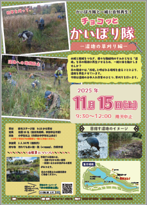 かいぼり隊と一緒に自然再生!「チョコッとかいぼり隊 -湿地の草刈り編- 」実施のお知らせ [11月15日(土)]