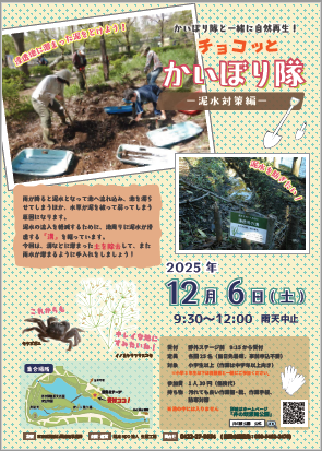 かいぼり隊と一緒に自然再生!「チョコッとかいぼり隊 -泥水対策編- 」実施のお知らせ [12月6日(土)]