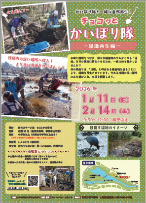 かいぼり隊と一緒に自然再生!「チョコッとかいぼり隊 -湿地再生編- 」実施のお知らせ [1月11日(日)、2月14日(土)]