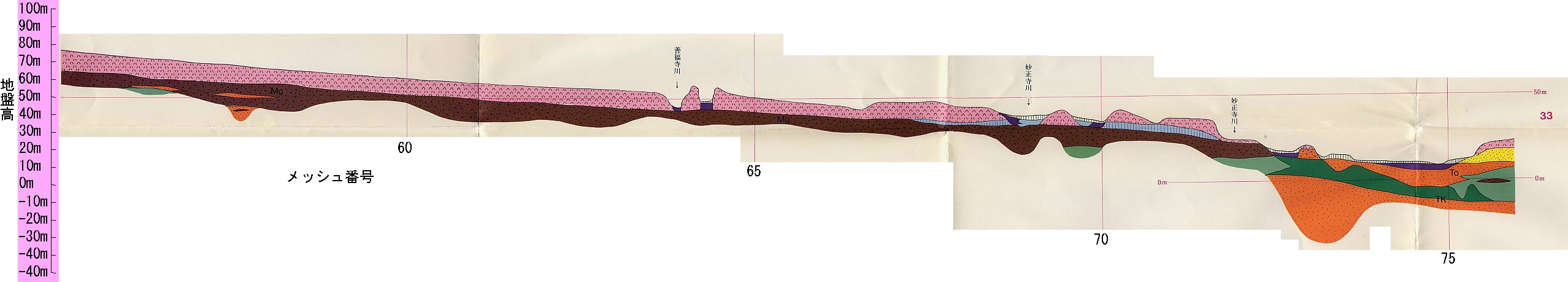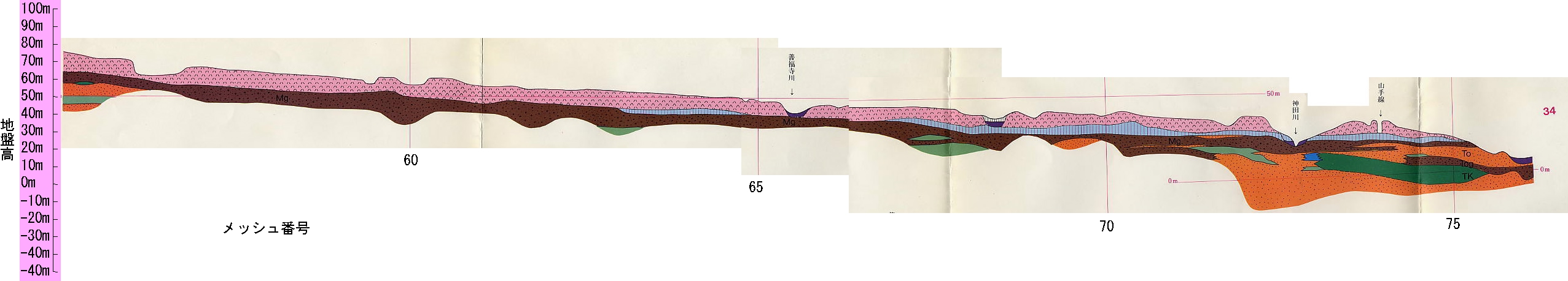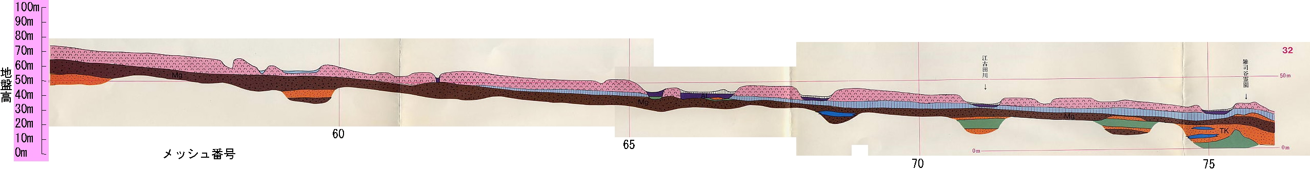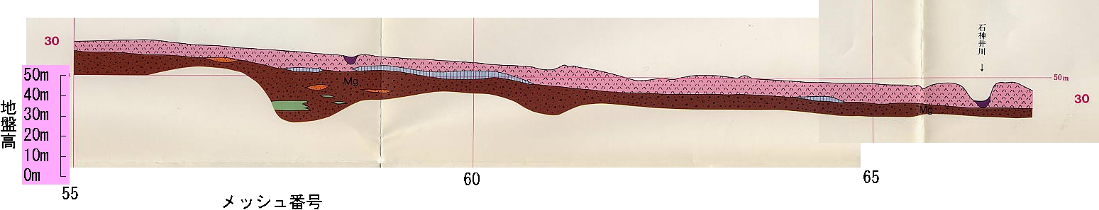 必要箇所のメッシュ番号をクリックしてください。東西方向の地質断面図が表示されます。