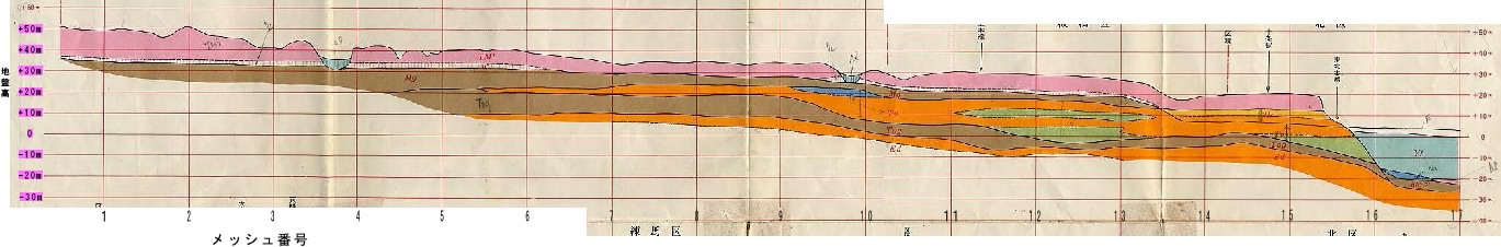 必要箇所のメッシュ番号をクリックしてください。東西方向の地質断面図が表示されます。