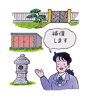 取得する土地に門、塀、庭石類等がある場合には、これらの移転等に要する費用を補償します。