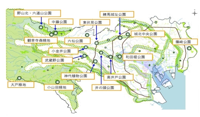 - 東京都は、緑溢れる東京の実現に向け、緑のネットワークの拠点となる都立の都市公園(都立公園)の整備を行っています。