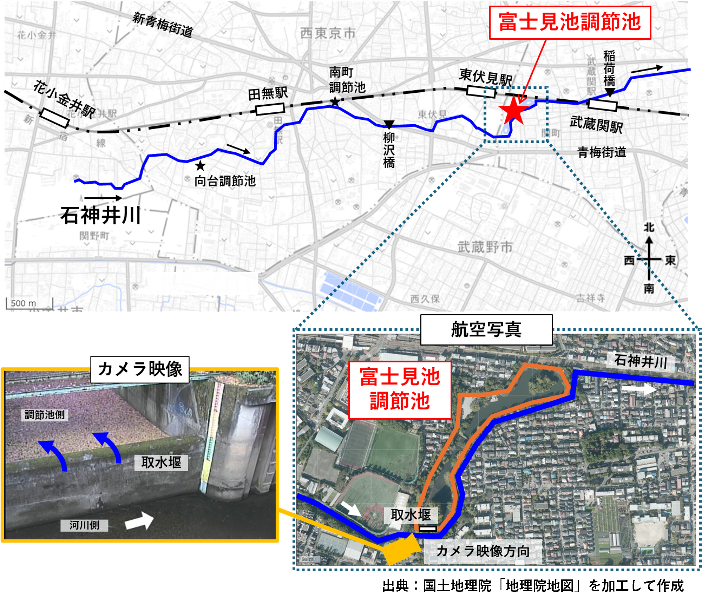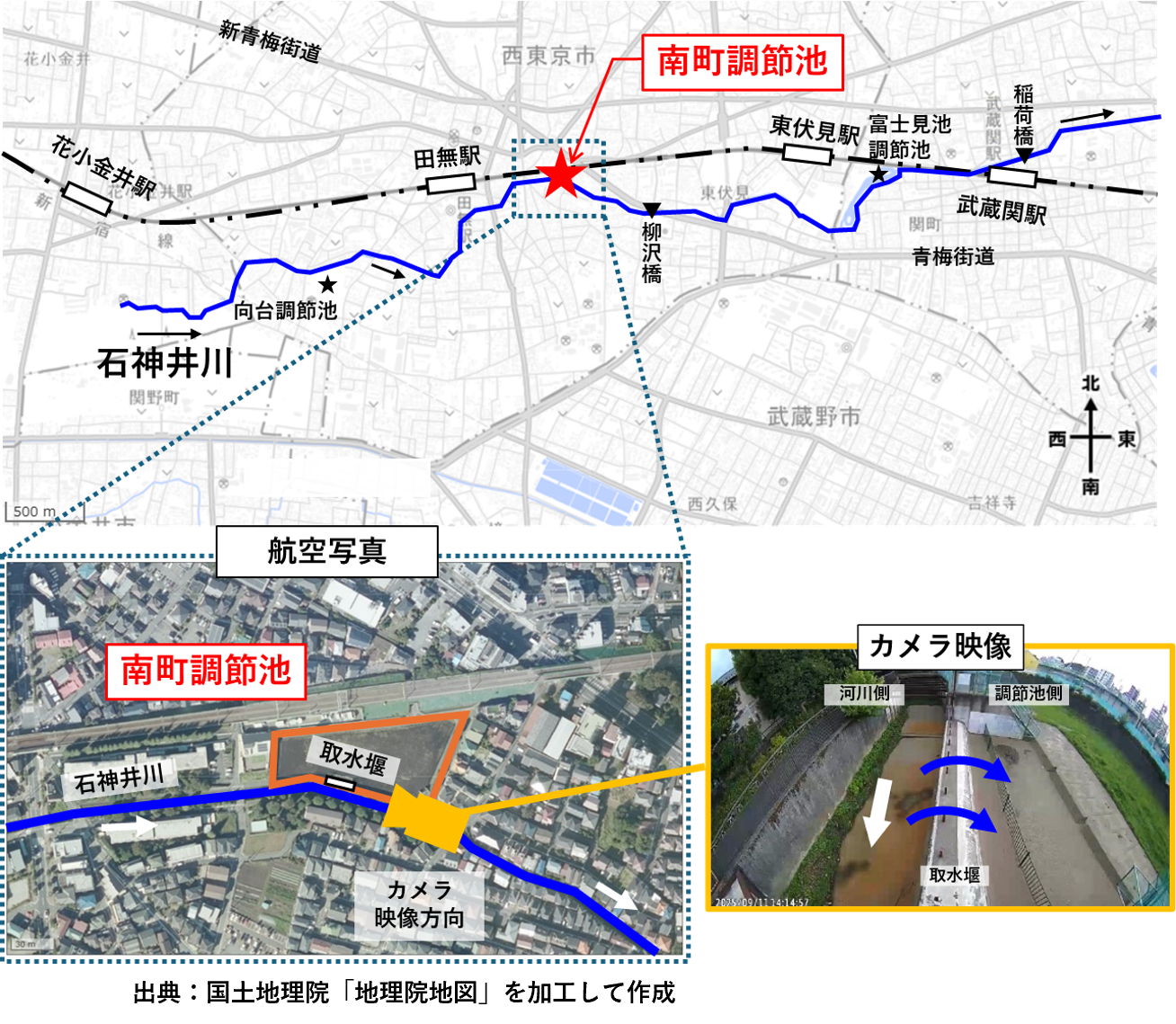 石神井川では合計3箇所の調節池で洪水を取水しました。