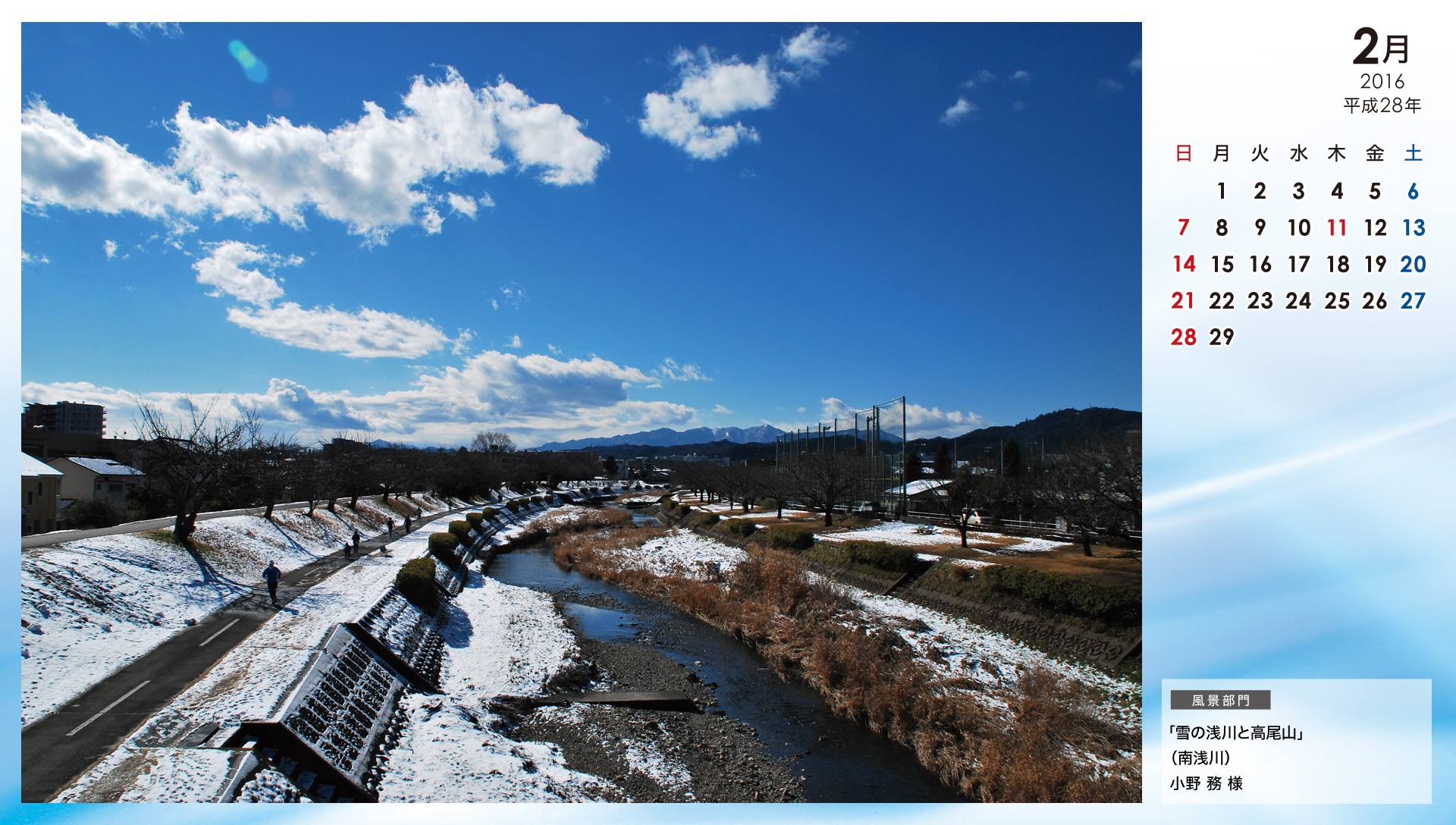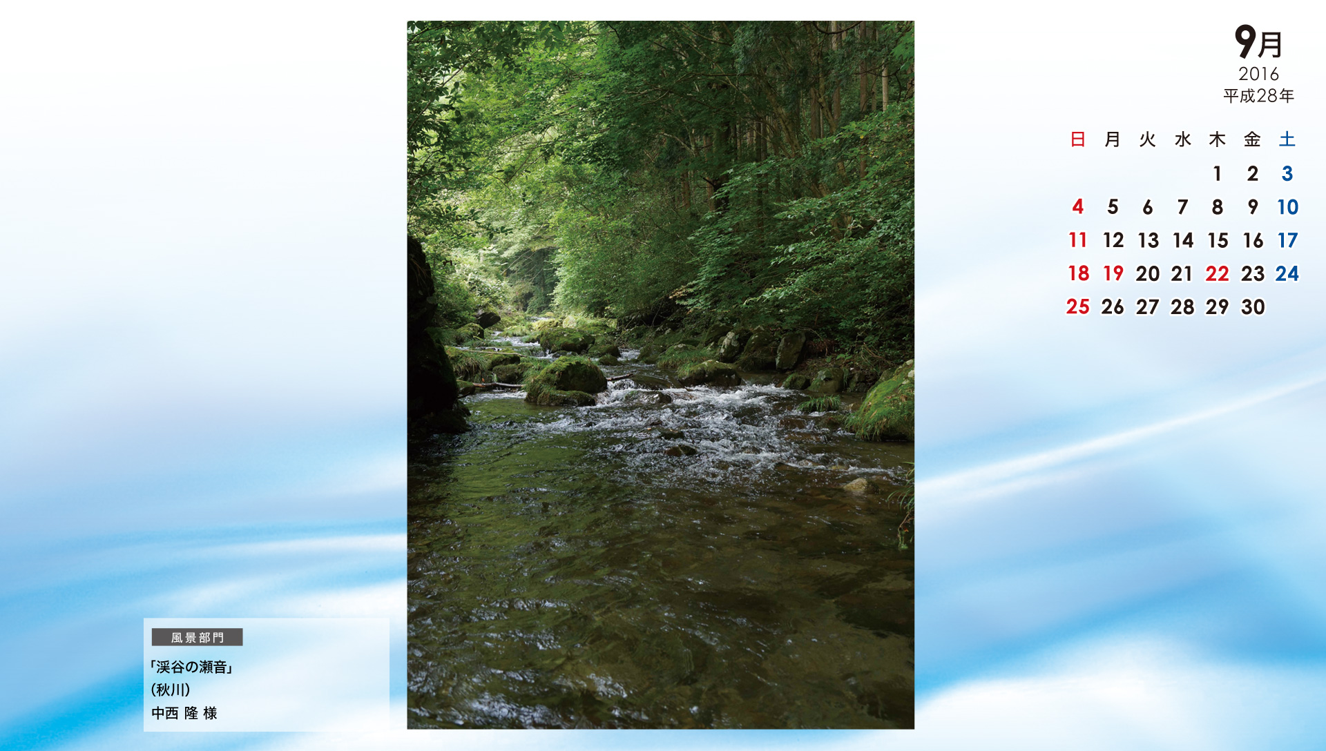 カレンダー(平成27年川のフォトコンテスト)