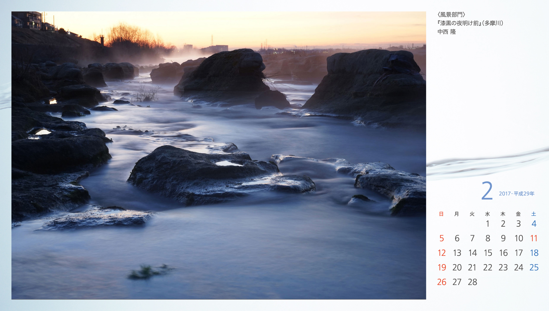 カレンダー(平成28年川のフォトコンテスト)
